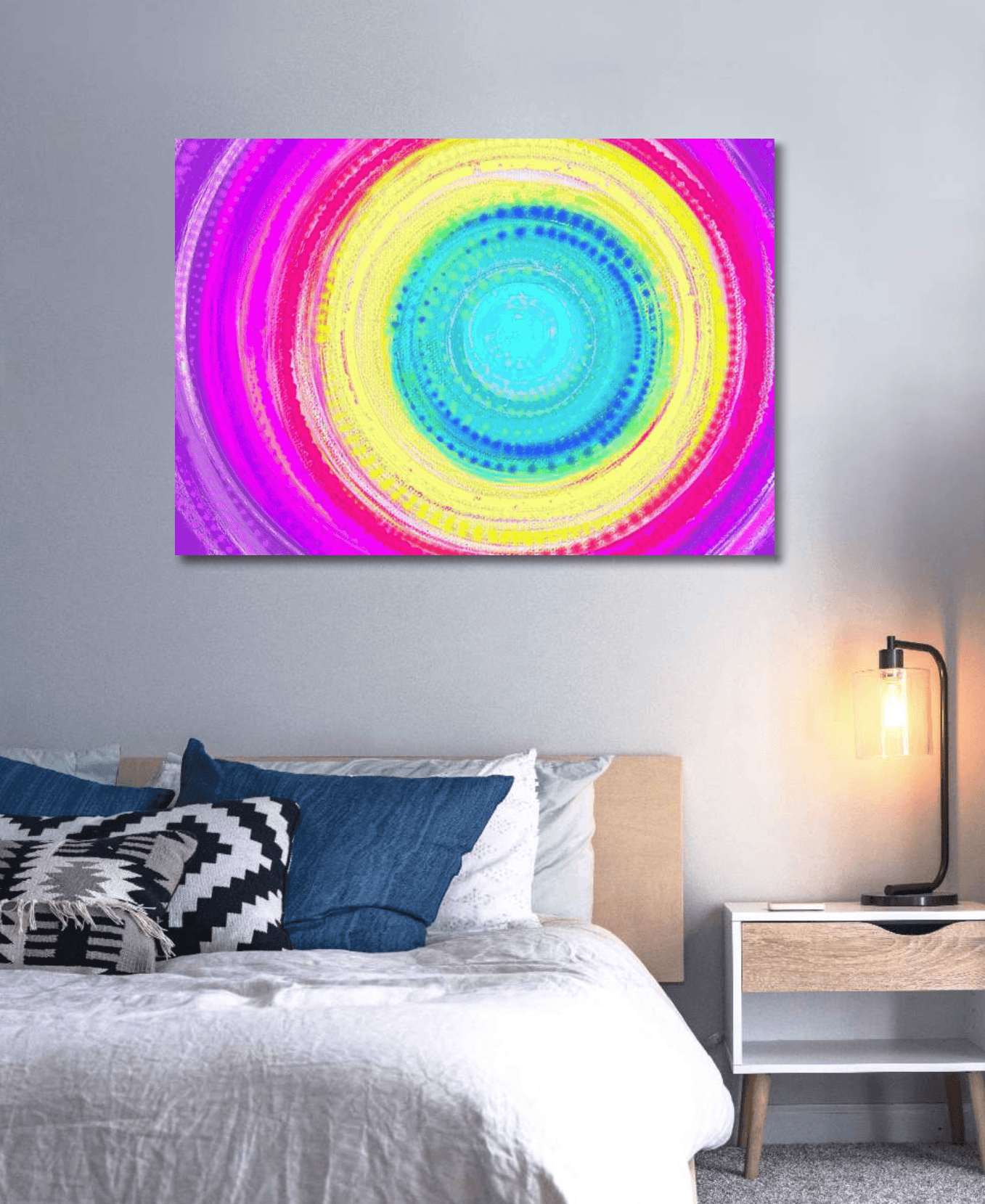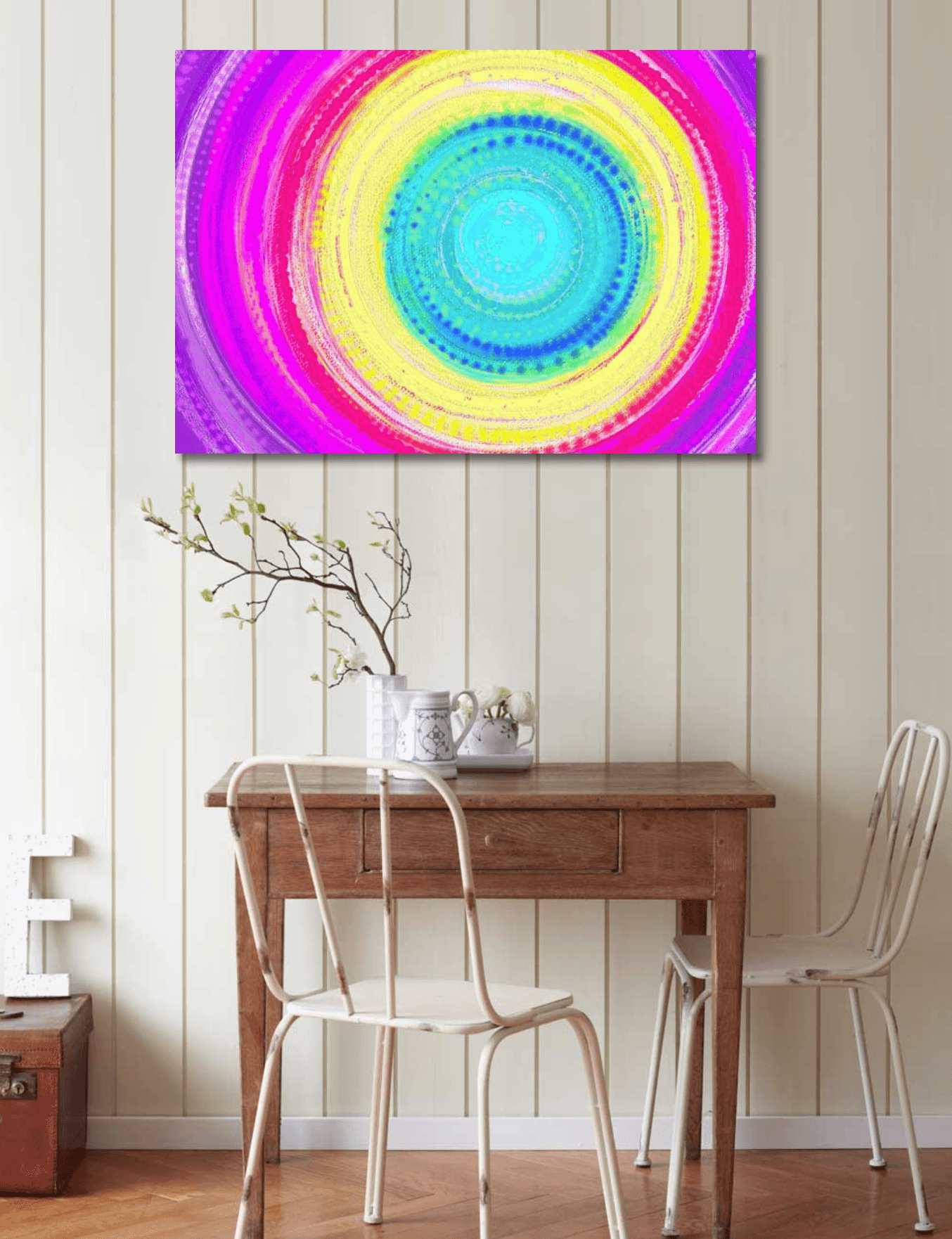 Giclée tisk na bavlněné plátno s rámem a závěsným ocelovým lankem